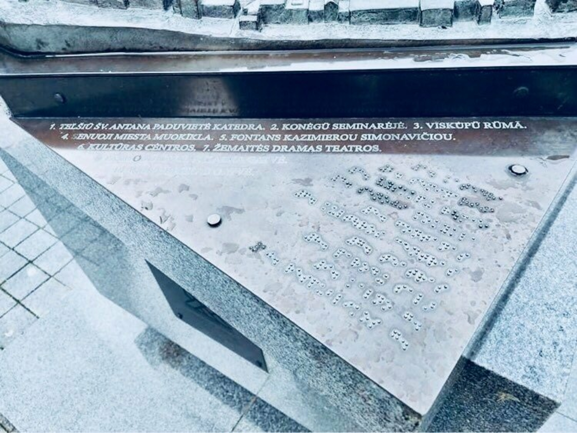 Vaegnägijatele mõeldud linnamudel on 2007. aastal loodud pronksist mudel, mis aitab nägemispuudega inimestel tutvuda Telšiai linnaga. Selle autorid on Vilniuse Kunstiakadeemia Telšiai teaduskonna tudeng Eglė Tamošiūnaitė ja arhitekt Algirdas Žebrauskas, juhendaja – dotsent Romualdas Inčirauskas. Mudelil on kujutatud üks seitsmest Insula künkast, Telšiai Püha Antoniuse katedraal, seminar, piiskopiloss, vana koolimaja, Kazimieras Simonavičiusele pühendatud purskkaev, kultuurikeskus, Žemaitė draamateater, näitustesaal ning Kalno ja Respublikos tänavad. Mudeli külgedel on Telšiai ja Žemaitija vapid. See võimaldab vaegnägijatel paremini mõista linna struktuuri ja olulisi paiku.