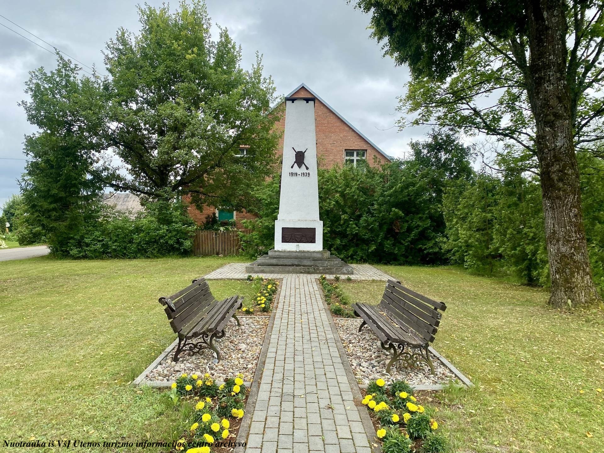 Vyžuonos Cemetery is an important cultural and historical site where notable individuals are laid to rest, including writer Bronius Radzevičius (1940–1980), poet and literary critic Antanas Masionis (1941–1974), and book courier Antanas Radzevičius (who passed away in 1937). The cemetery also honors the memory of partisans from the Vyžuonos parish— in 1992, folk artist and wood sculptor Stasys Karanauskas created a post with the image of the Caretaker. The cemetery's monuments date back to 1881, and its gates, featuring small chapels and the sculpture "Christ Carrying the Cross," erected in 1888, are listed in the Register of Cultural Heritage. Near the cemetery, there is also a memorial stone dedicated to those who fought and fell in battle.