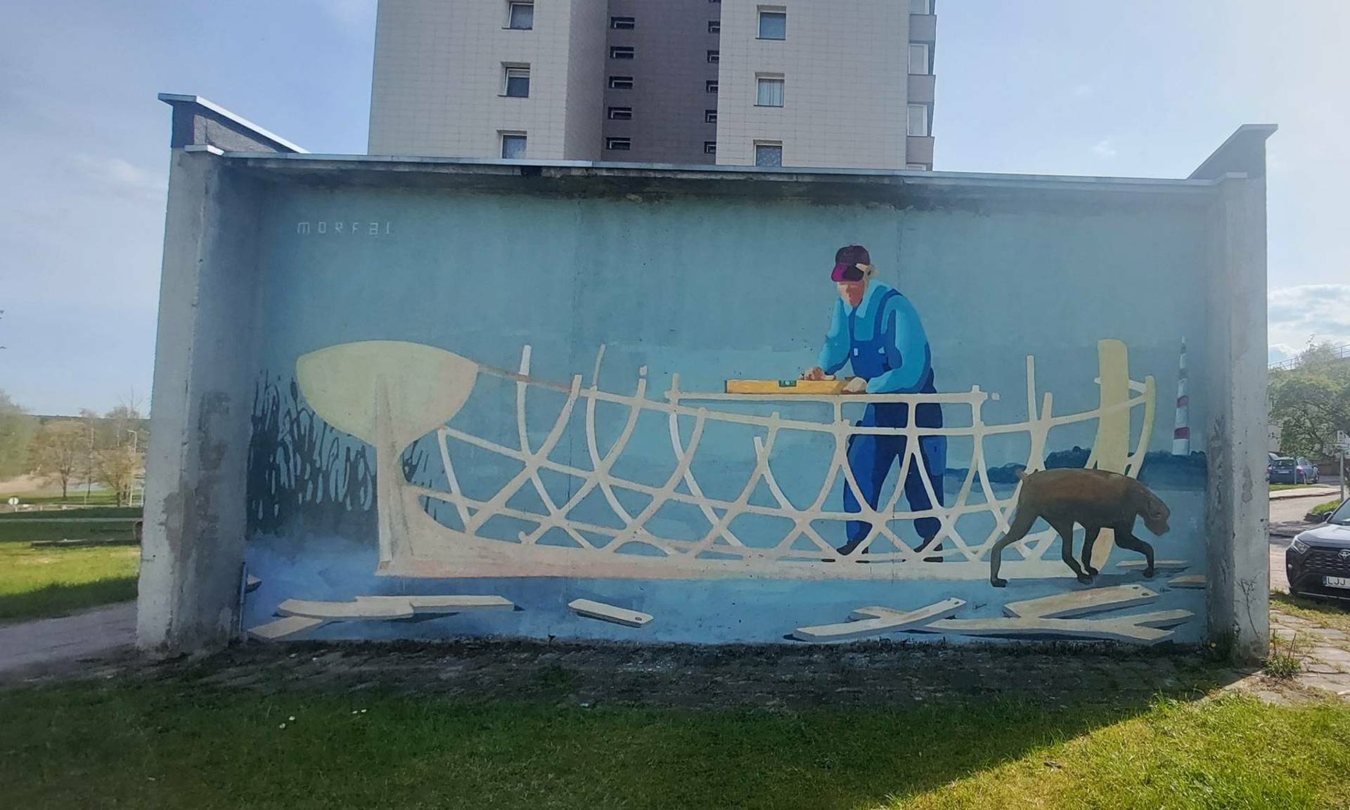 The decorative sculpture "Hymn to Labor" by Juozas Kęstutis Patamsys was created in 1975. This sculpture is one of the most notable works of the artist, expressing respect for human labor and its importance in society. The sculpture features a modern design and symbolizes the strength of the workforce and its connection to everyday life.