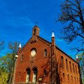 The Saugai Evangelical Lutheran Church was built between 1845 and 1848 from red bricks. Tall, massive, and rectangular in design with a small tower, it was consecrated in 1857. The church featured a unique combined altar-pulpit structure, a 14-register organ, and a single bell. After the war, the church was restored and continues to host services to this day.