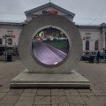 Unique Portals are technological art sculptures that connect cities through live video streams. Portals have been installed in Vilnius, Lublin, Dublin, and New York. In Vilnius, it stands near the railway station, in Lublin, it is located in Lithuanian Square. The Dublin Portal is situated near "The Spire," and in New York, it is near the iconic Flatiron Building. These sculptures are made from concrete, stainless steel, and tempered glass, featuring LED screens and cameras. The Portal network, initiated by artist Benediktas Gylys, aims to unite cities and people. Currently, four cities are connected, with plans to expand the network to more locations worldwide.