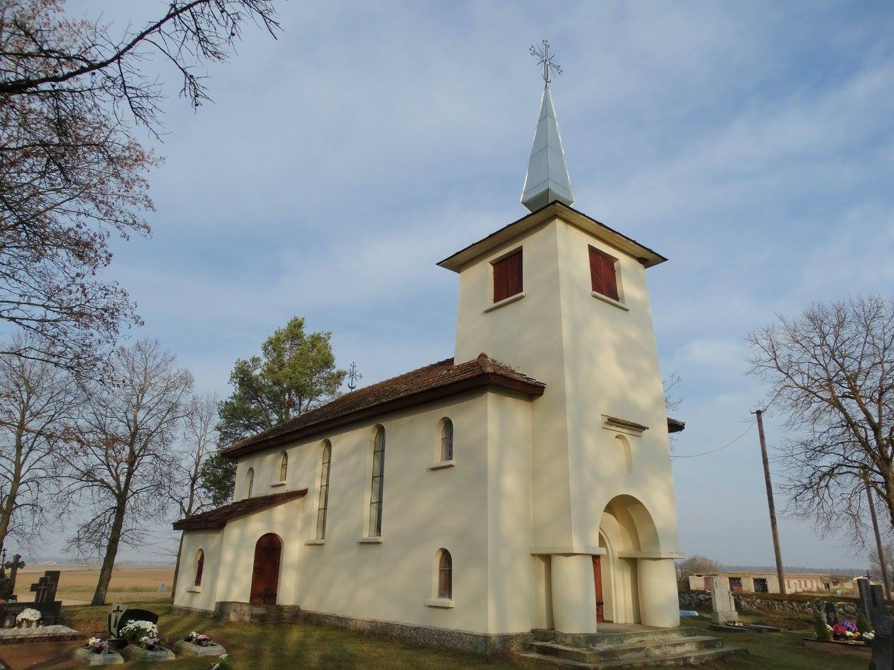 The Fiodoriškis community's place of worship in Kvedariškiai is an active Old Believers' church. This wooden church, built in the late 19th century, is characterized by its minimalist forms and simple design. Its architectural silhouette resembles that of a typical residential house, featuring a rectangular plan, a narrower vestibule, and a gabled roof. The church lacks a tower, which emphasizes its minimalist style.