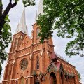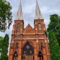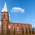 In 1910, under the care of Pastor Antanas Rumševičius, a red brick church was built, becoming an important center for the religious community. After World War I, Pastor Ignas Andrašiūnas took the initiative to add auxiliary buildings to the church and established a parish hall. In 1928, the pastor painted the church walls, installed new pews, and provided the necessary church furnishings. Finally, on August 12, 1929, Bishop Kazimieras Paltarokas officially consecrated the church. Near this church, on the site of a former hillfort, one can see the remnants of an earlier church—its bell tower and a small storage building that was previously used as a mortuary.